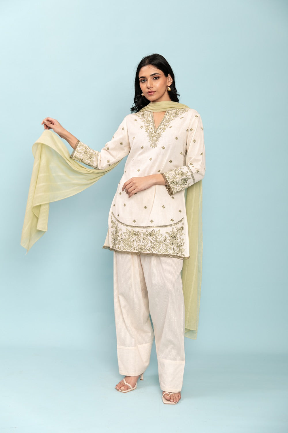 Elevate the look with heirloom-inspired jewellery or contemporary accents. Complete with elegant footwear, then let the silhouette speak for itself.