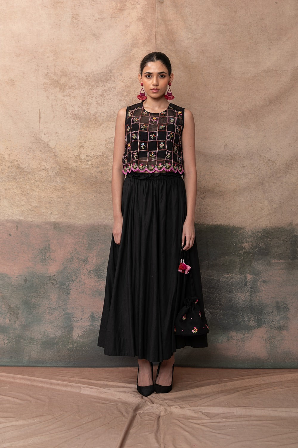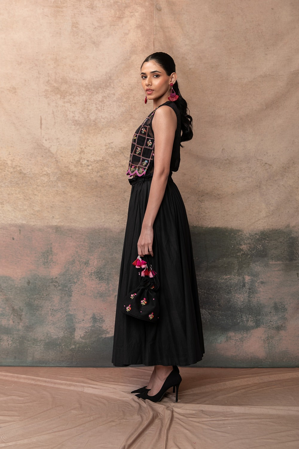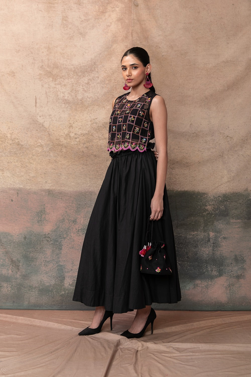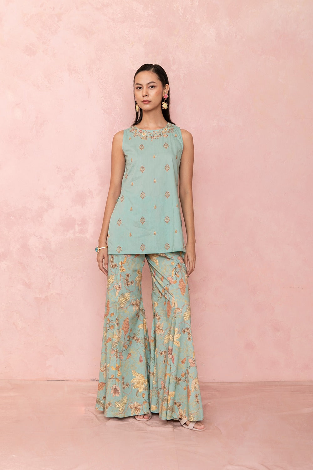 Label Naariti’s two-piece dresses offer a balance of statement-making design and thoughtful comfort, perfect for festive gatherings with effortless flair.
